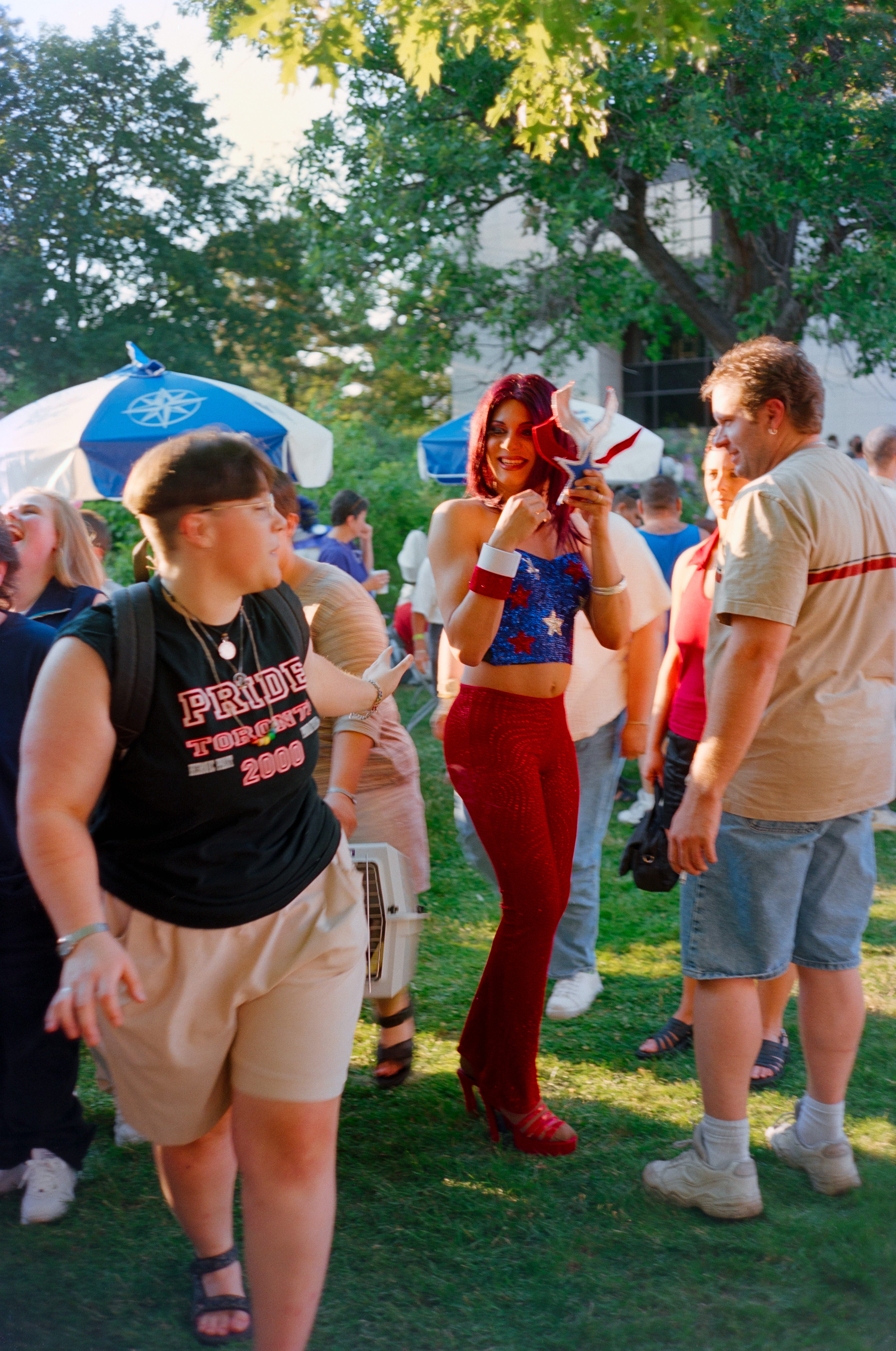 Whether it’s a passing fancy, a permanent derangement, cosplay, roleplay, fantasy, alter-ego, that morning’s improv, or unalterable need, our revelers find space in pride to let it all hang out.
